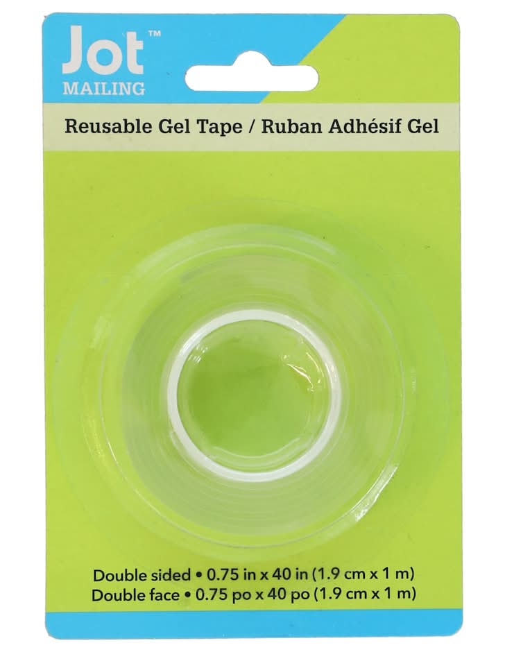 Use this double-sided gel tape for so many reasons in your home and in the office. You can mount items to the wall, repair items, and more. You can reuse the tape by washing it with warm water and letting it dry. There are 40-in of tape on a single roll. • Size: 40x0.75 in • Packaging: Reusable