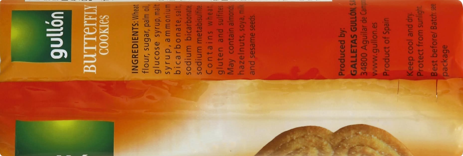 Ingredients: Wheat Flour, Sugar, Palm Oil, Glucose Syrup, Malt Syrup, Ammonium Bicarbonate, Salt, Sodium Bicarbonate, Sodium Metabisulfite Contains: Wheat, Gluten, Milk, Tree Nuts, Soybeans