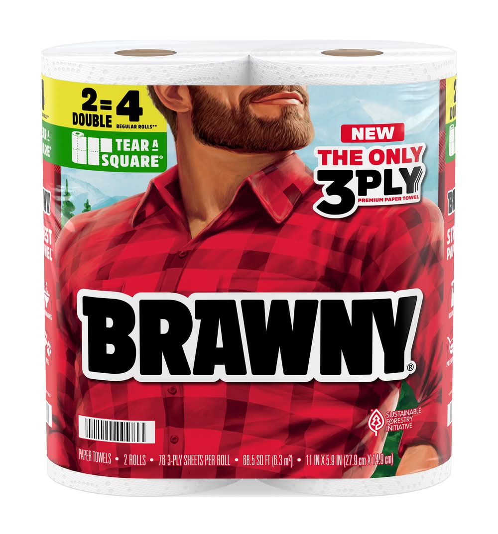NEW! Conquer messes like never before with Brawny® 3-Ply Tear-A-Square® Paper Towels! The only 3-Ply premium paper towel, and the strongest on the market.* Every 3-Ply sheet combines unmatched strength, incredible absorbency, and long-lasting durability*—all in one versatile paper towel roll. And with the Brawny® Tear-A-Square® feature, you can use just what you need for the task at hand and reduce waste. From full-on disasters to everyday mishaps, Brawny® Tear-A-Square® Paper Towels are made for the messes you don’t see coming. Whether it’s tackling stubborn bathroom grime like toothpaste clumps and soap scum, handling pet accidents and muddy paw prints, or scrubbing burnt-on grease from the grill, Brawny® Paper Towels has your back. Plus, they’re made from responsibly sourced trees and certified by the Sustainable Forestry Initiative,** so you can feel good about your choice without sacrificing strength or performance. Choose Brawny® Paper Towels today and experience the cleaning power that helps you handle whatever life throws your way with ease!*vs. national branded retail paper towels**SFI is a registered trademark owned by Sustainable Forestry Initiative, Inc.***Based on a regular roll with 38 sheets. Size: 11x5.9 in