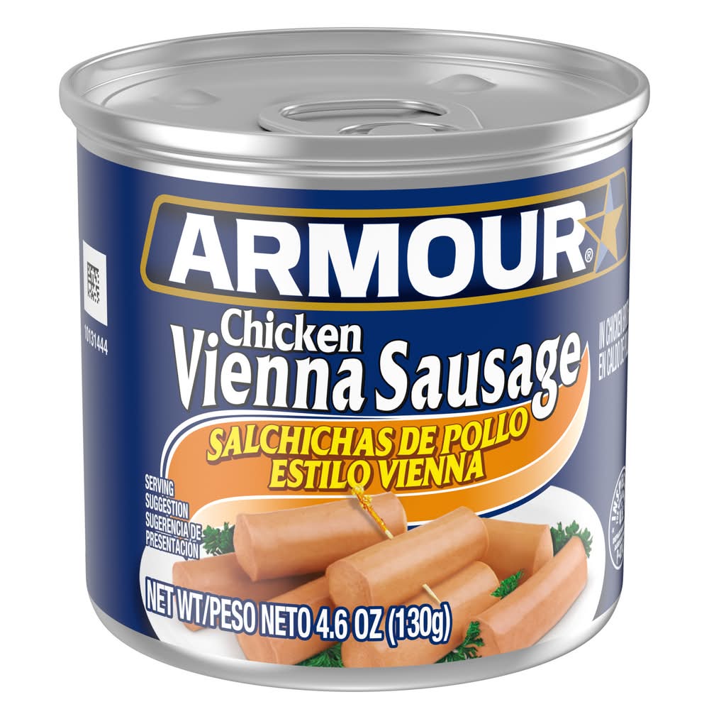 Armour Star Chicken Vienna Canned Sausage offers ready to eat sausage with great flavor. The Vienna sausages are made with chicken in chicken broth. This chicken sausage can be eaten right out of the can, so you can enjoy this canned food as a ready to eat snack. Use the chicken sausages to dress up appetizers, top pizzas, add flavor to stews or elevate pasta dishes.