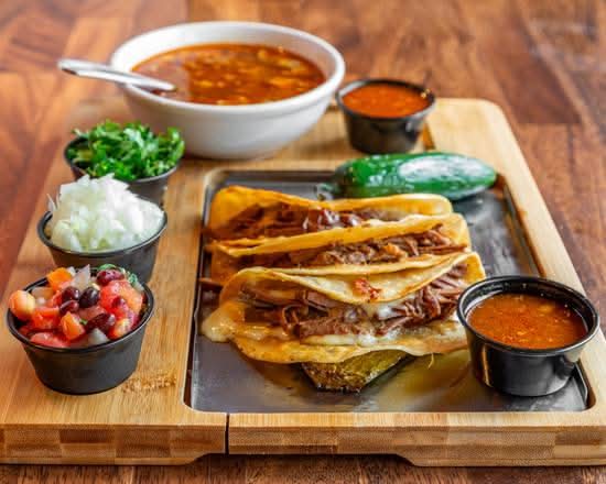 Three soft tacos in your choice of corn or flour tortillas, or lettuce wrap. Served with onions, cilantro, mesquite salsa, black bean pico de gallo, and a cup of our charro bean soup.