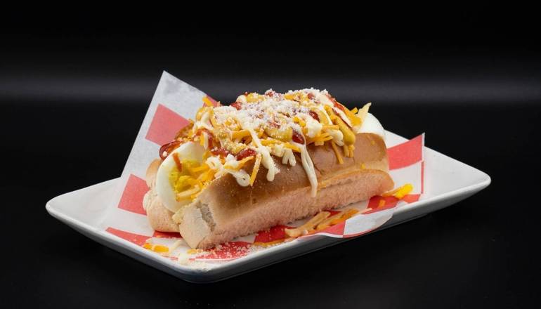 scrambled hard boiled egg, parmesan cheese, traditional grated cheese and sauces