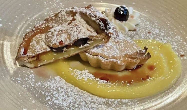 Traditional Apulian tarte, pastry cream, imported amarena cherries, creme anglaise.