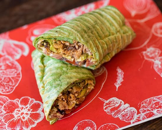 Chicken, Avocado, Tomato, Spinach Tortilla, Jajik Sauce, Feta Cheese, Black Olive