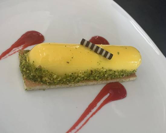 Lemon Pistachio cheesecake refined low sugar cheesecake, with a sticky, nutty base with a zesty sweet base on a very thin layer vanilla cake.