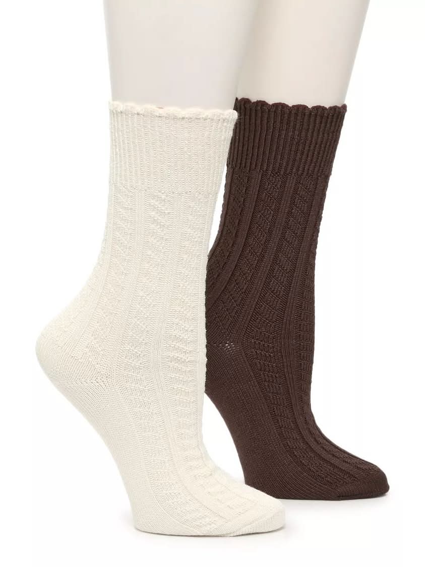 Kelly & Katie Super Soft Cable-Knit Crew Socks - 2 Pack (Cream/Brown One Size)