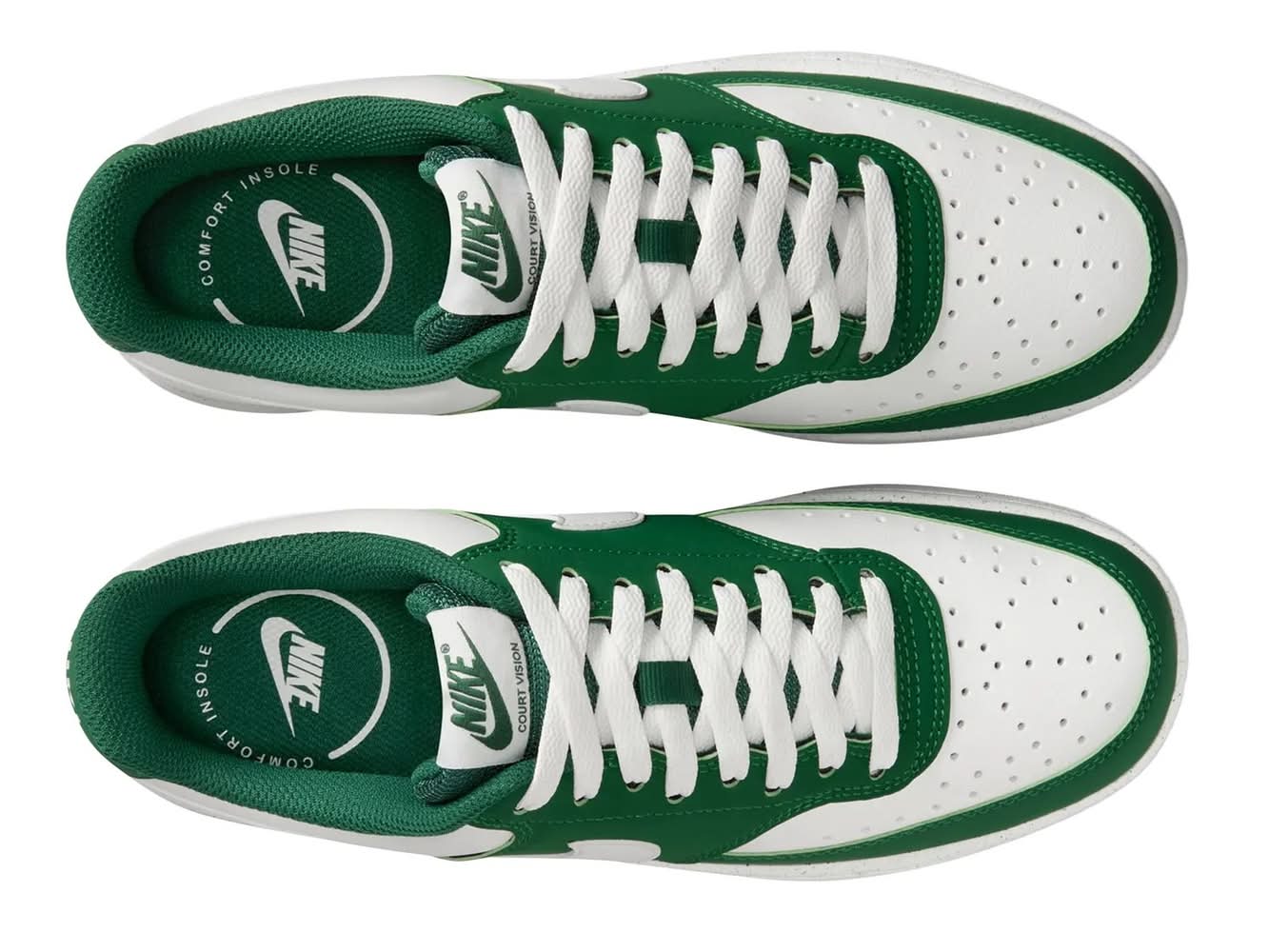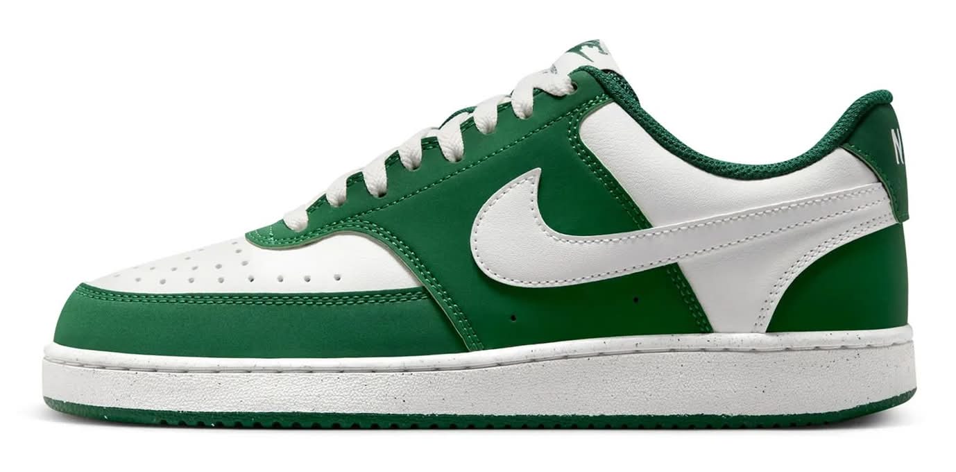 In love with the classic look of '80s basketball but have a thing for the fast-paced culture of today's game? Meet the Nike Court Vision sneaker. Stitched overlays inspired by the hook-shot look of old-school b-ball catch the eye. • Color: Green/white • Size: Medium - 11 • female