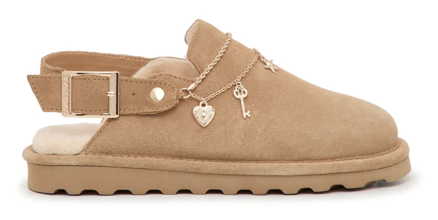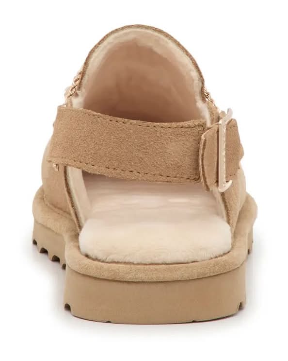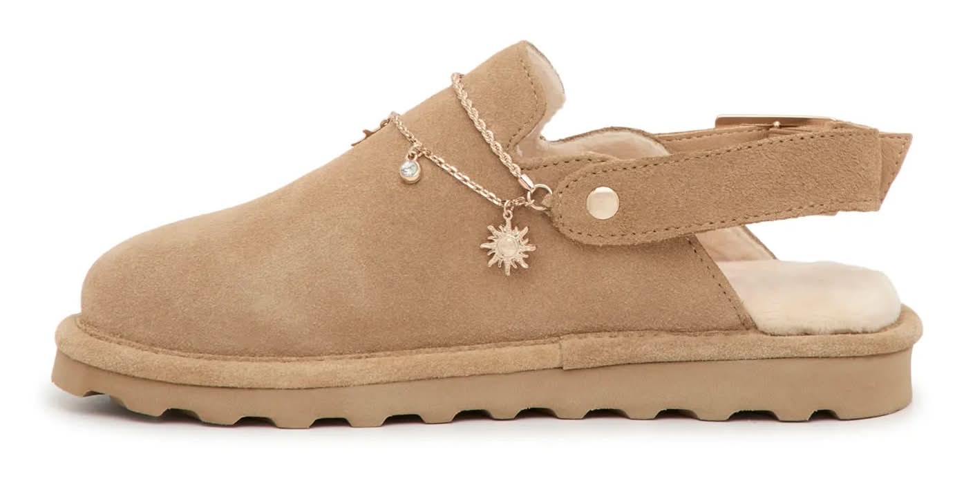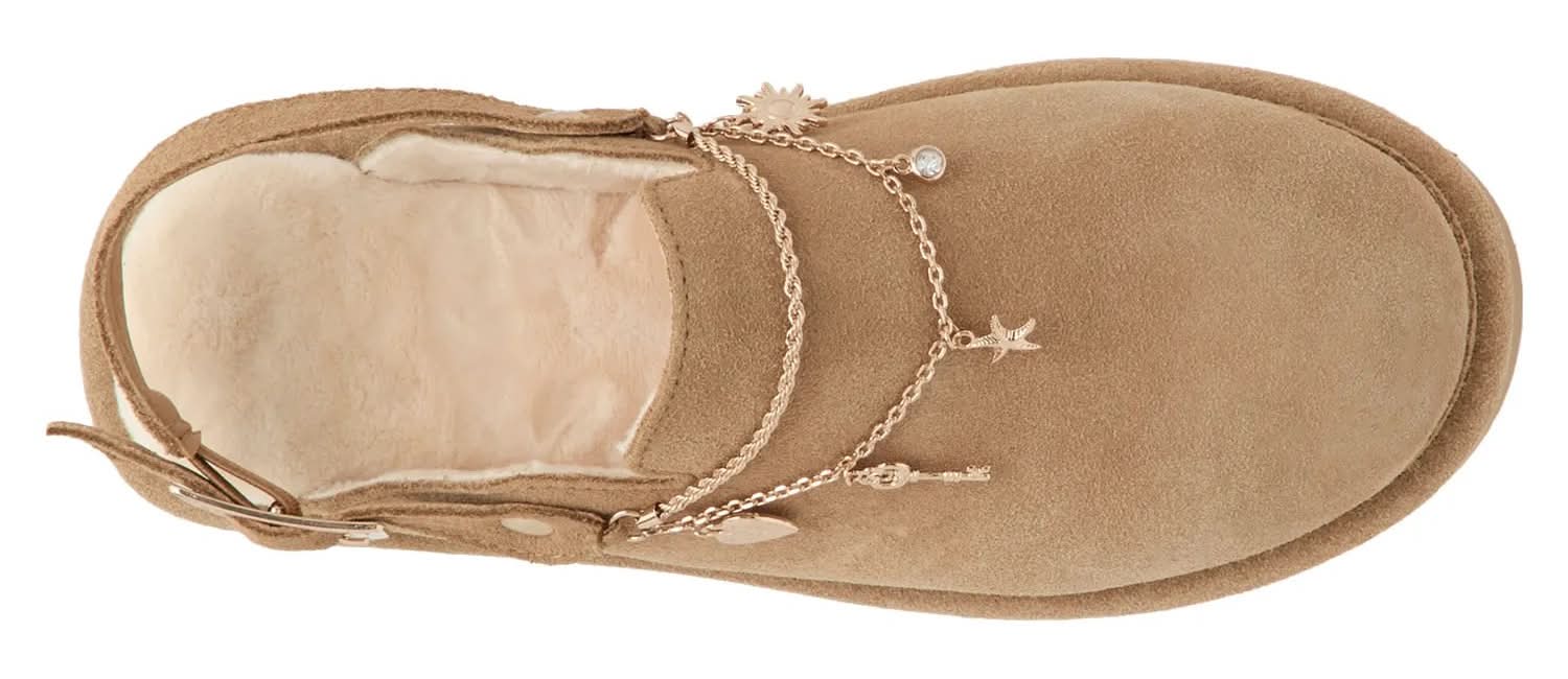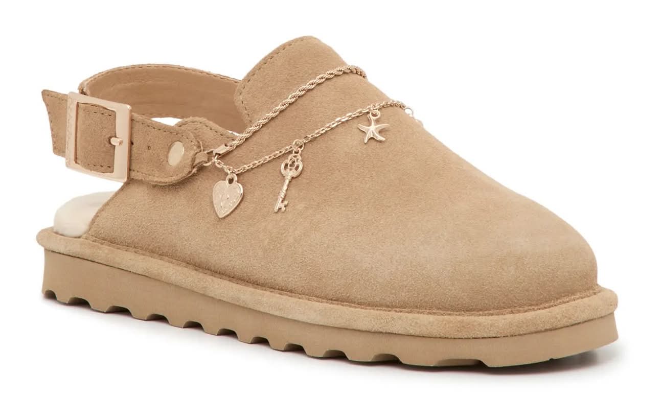 Stay stylish even as you lounge around the house in the Lexi slipper from Bearpaw. The slingback strap features a charm-embellished chain that pops against the suede upper. • Color: Toffee • Size: Medium - 9 • female
