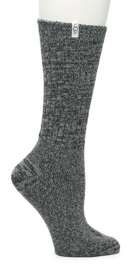 Keep it cozy with the Rib Knit crew socks from UGG. This trendy accessory will keep you warm throughout the cold weather and they can easily be paired and slouched to elevate your favorite pair of UGG boots. • Color: Charcoal grey/black • Size: One Size • female