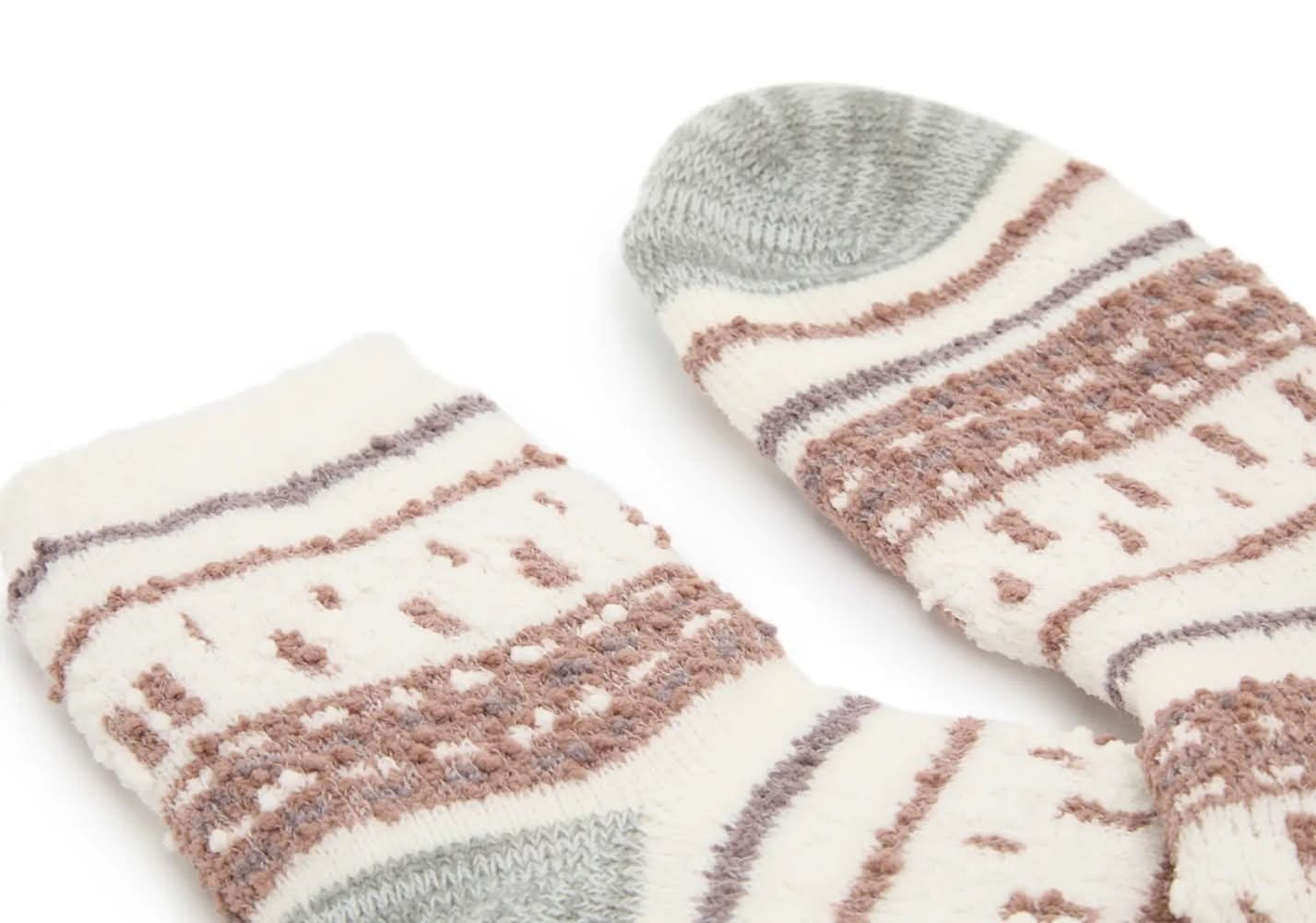 Fireside Cozy Lodge Popcorn Fairisle Women's Crew Socks (Light Brown One Size)