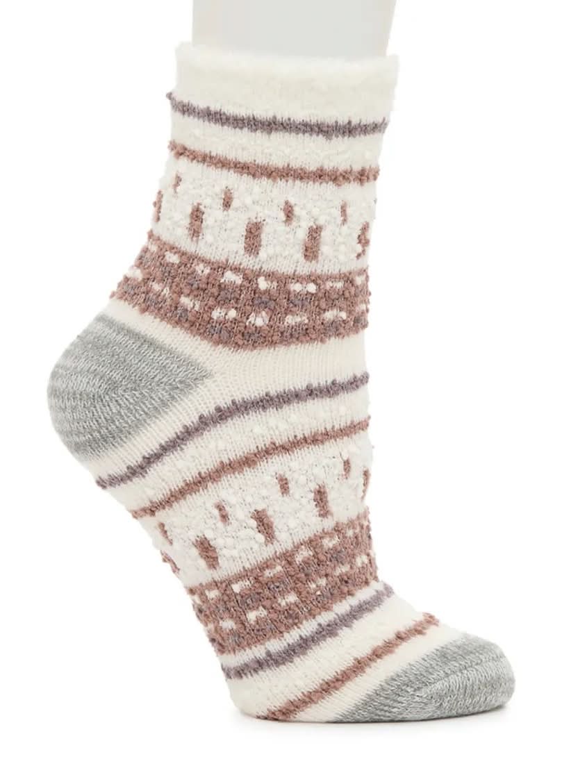 Stay warm and stylish with FIRESIDE's Cozy Lodge Popcorn Fairisle crew socks. Made with a soft blend infused with aloe, these socks offer comfort and a cozy fit that's perfect for chilly days. • Color: Light brown • Size: One Size • female