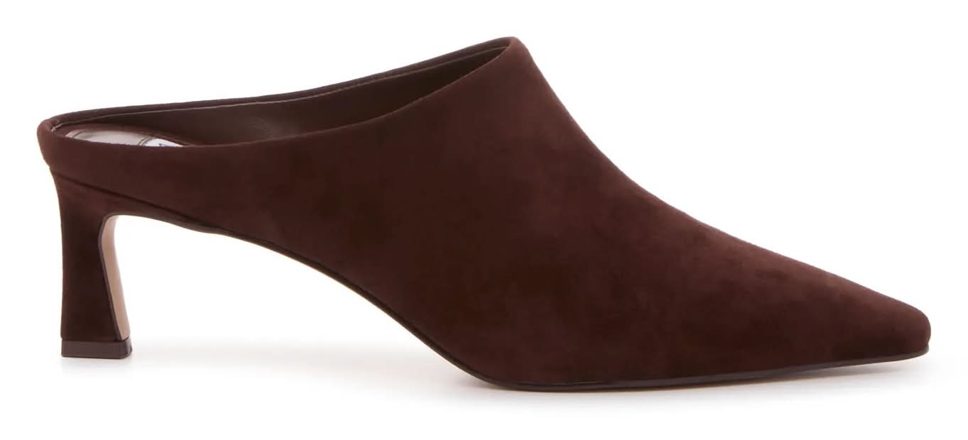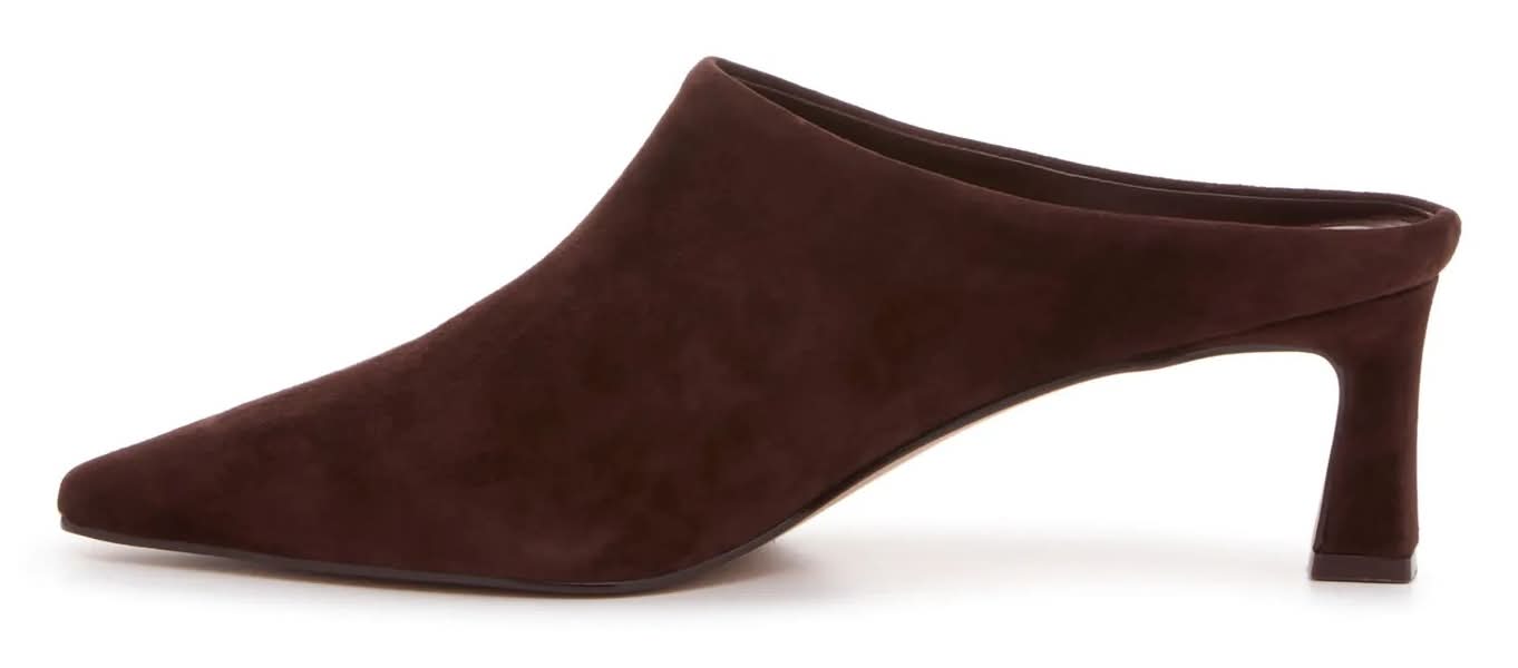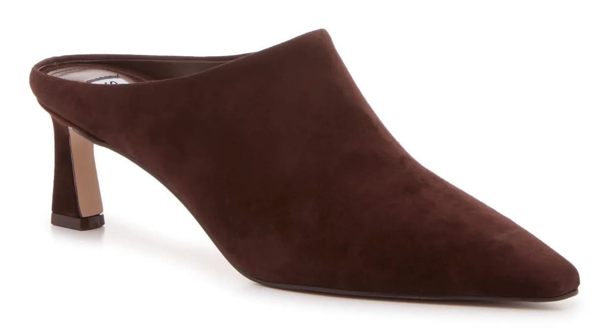Easily elevate your looking by slipping into the Niara mules from Steve Madden. This sophisticated style features a simple silhouette, complete with a modest flared heel and a snipped pointed toe. • Color: Chocolate suede • Size: Medium - 11 • female