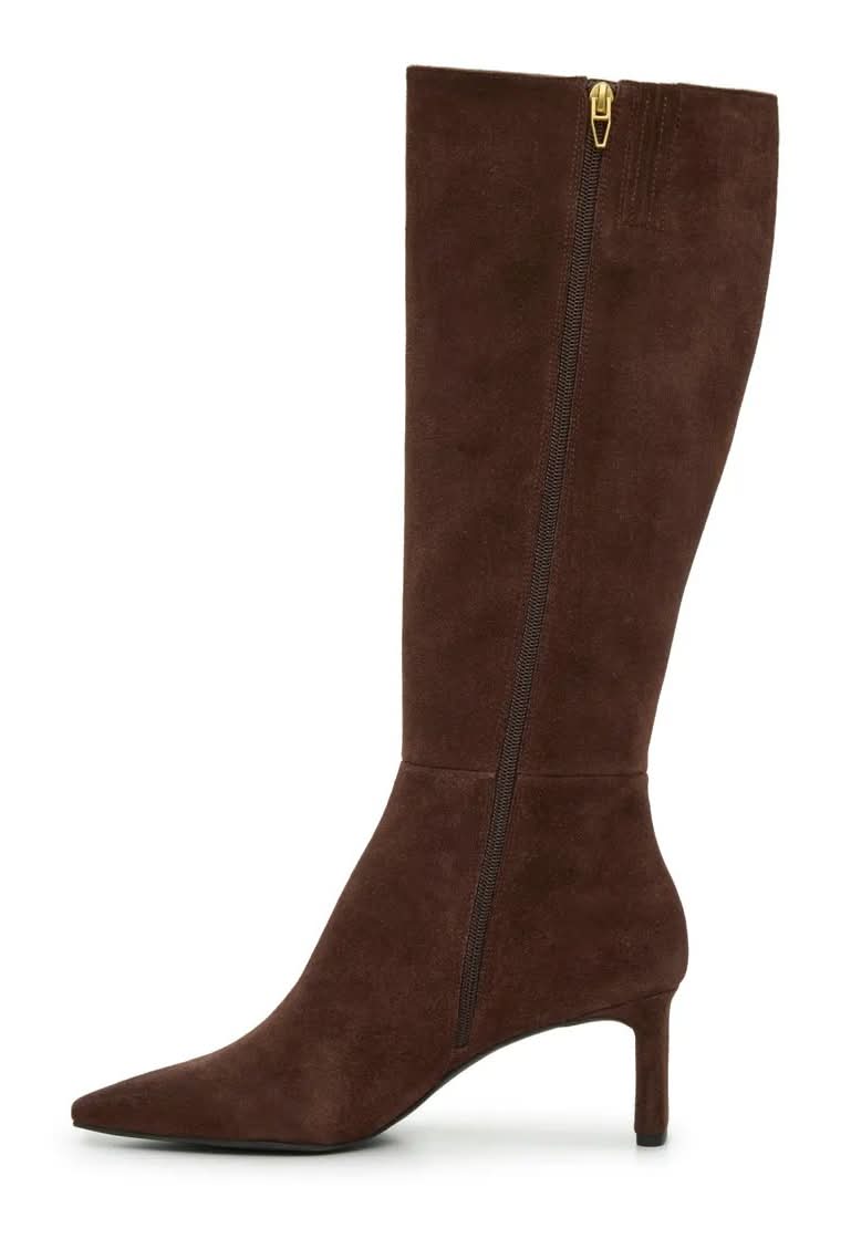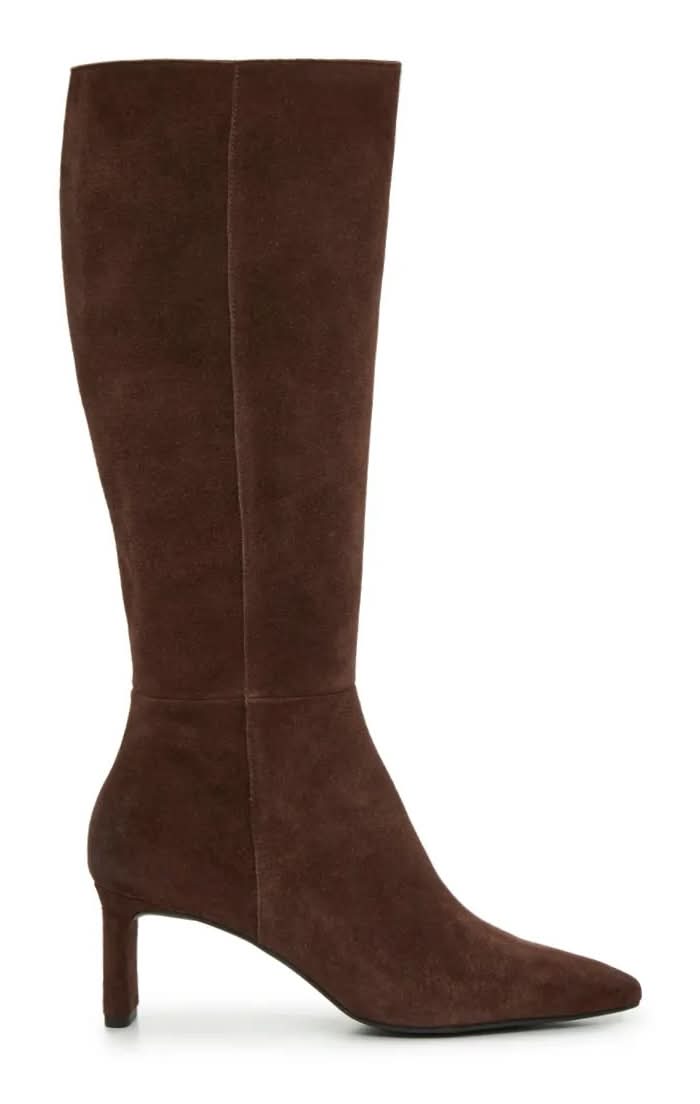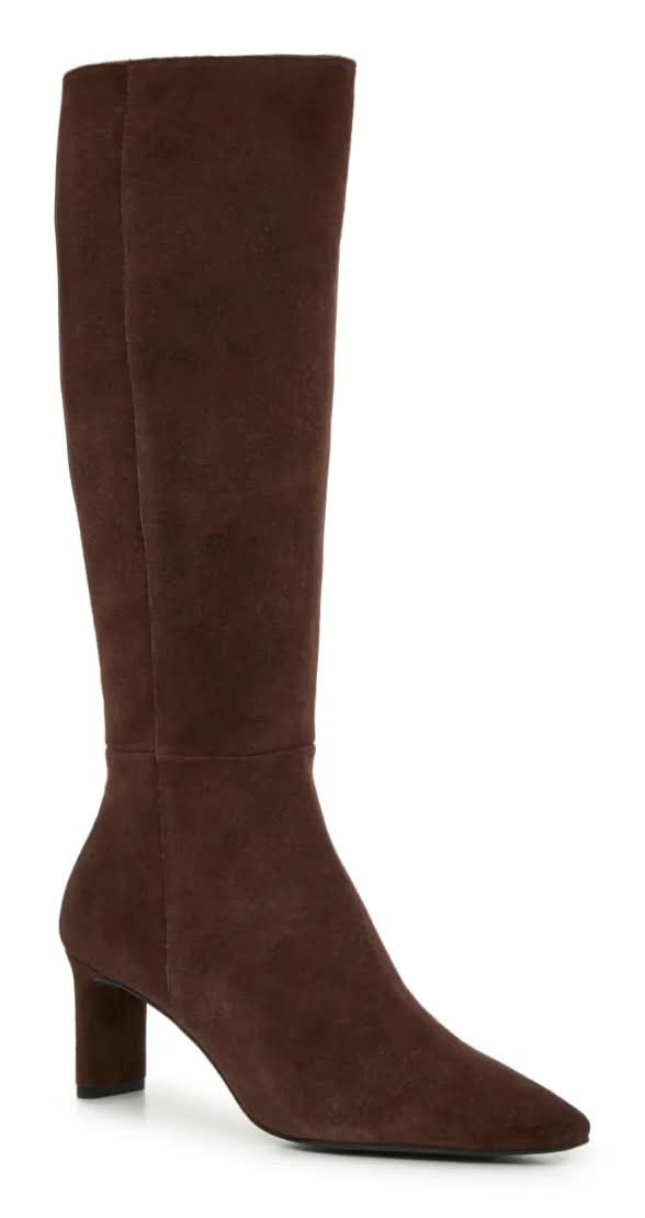 Enhance every outfit with the sophisticated Gabby boots from Dolce Vita. The sleek silhouette features a classic tall shaft, a soft suede construction, and a trendy snipped toe.Click here for Boot Measuring Guide. • Color: Chocolate • Size: Medium Width, Standard Calf - 11 • female
