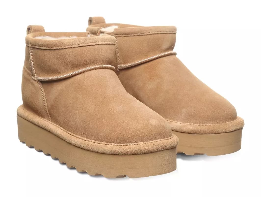 Fall and winter outings can become enjoyable for your kid in the Retro Shorty snow boot from Bearpaw. Side elastic gore offers your little one a comfortable fit wearing the suede boot. A BearCoat Rain & Stain Repellent treatment ensures dry comfort. Not sure which size to order? Click here to check out our Kids’ Measuring Guide! For more helpful tips and sizing FAQs, click here.. • Color: Iced coffee • Size: Medium - 13 Youth • female
