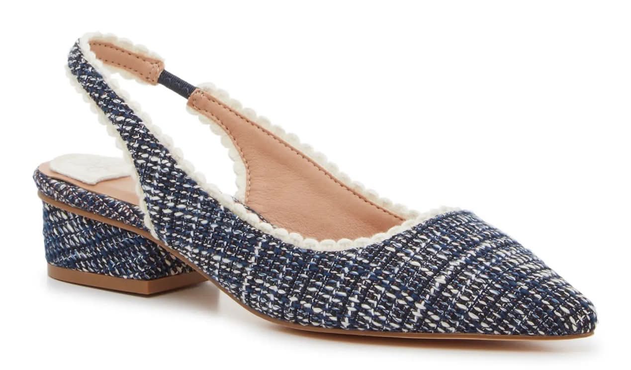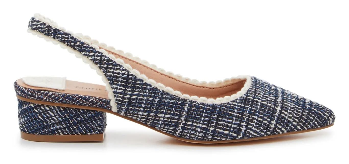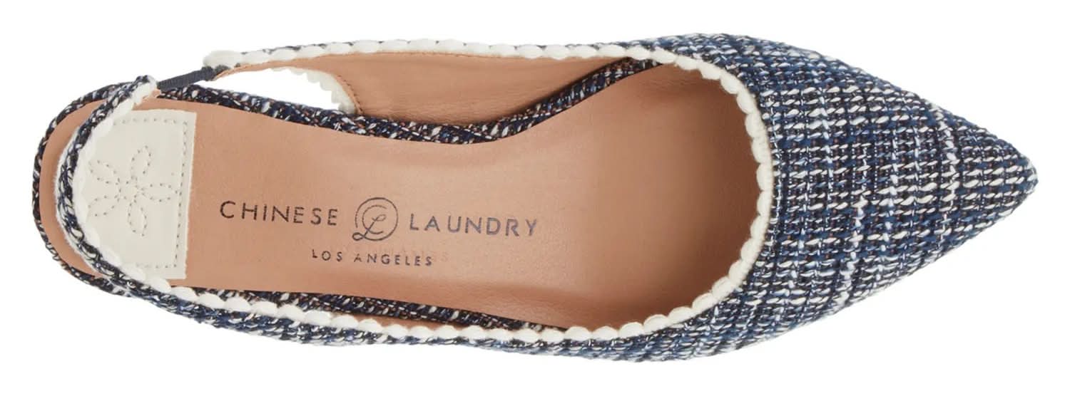 Keep it classic with the Mango pump from Chinese Laundry. The sharp slingback strap evokes vintage vibes, while the subtle block heel elevates your look. • Color: Navy tweed • Size: Medium - 8.5 • female