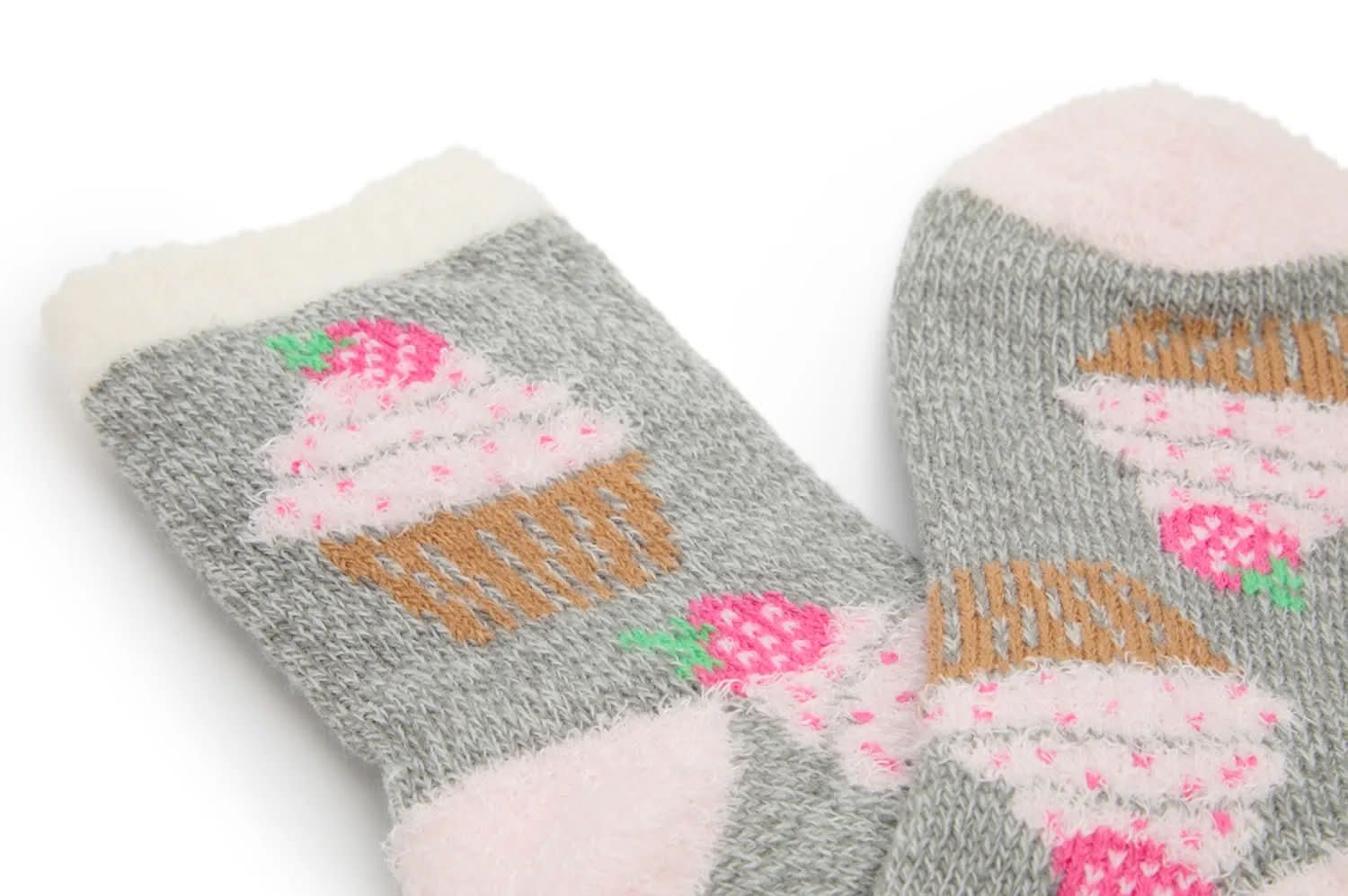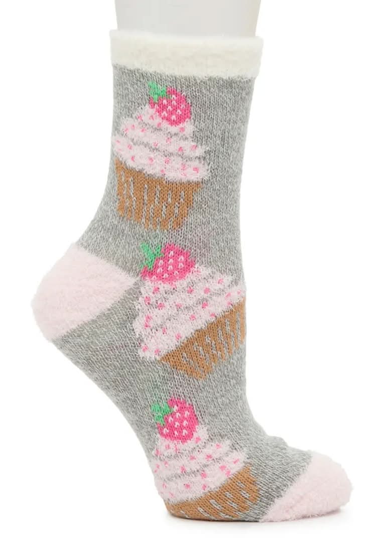 Fireside Cozy Lodge Cupcake Women's Crew Socks (Grey/Multicolor One Size)
