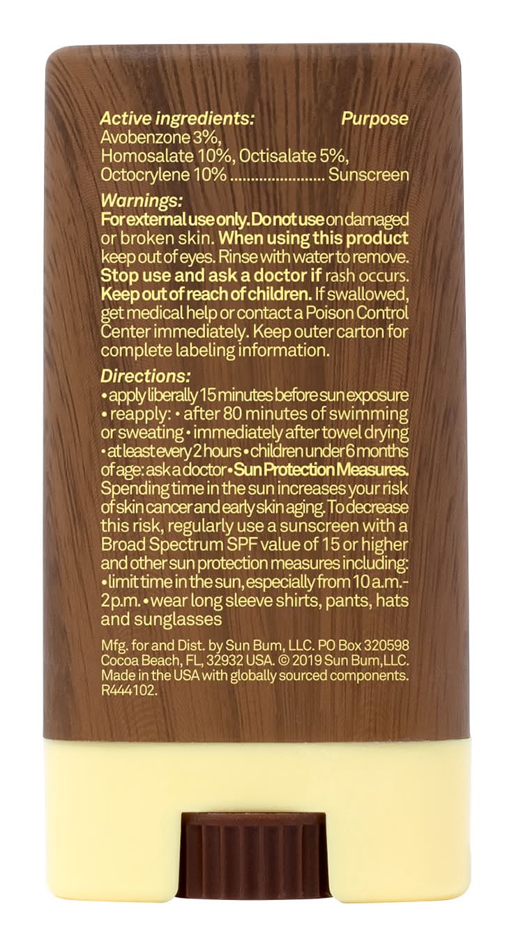 Sun Bum's Broad Spectrum UVA/UVB protection with Vitamin E is available in a convenient and easy to use Face Stick that helps when you're dealing with squirming kids, sandy hands, or just need a quick swipe of sunscreen across your face. With our SPF 30 sunscreen face stick, you get: Broad Spectrum UVA / UVB Protection, Hypoallergenic, Oxybenzone Free, Cruelty Free, Oil Free, Paraben Free, Gluten Free, Non-Comedogenic, PABA Free, Sun Bum Original Scent, Water Resistant (80 Minutes), Product of USA • Color: Multicolor • Size: .45 • female