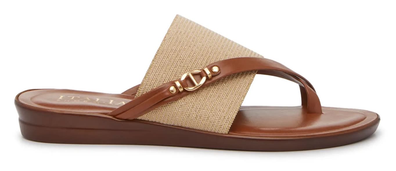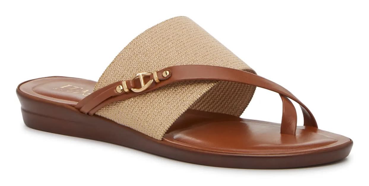 Slide into the Heidie sandal from Italian Shoemakers for a tailored finish to any warm weather look. The slim wedge and trendy toe loop complement the gold-toned hardware accent. • Color: Brown/platinum • Size: Medium - 8 • female