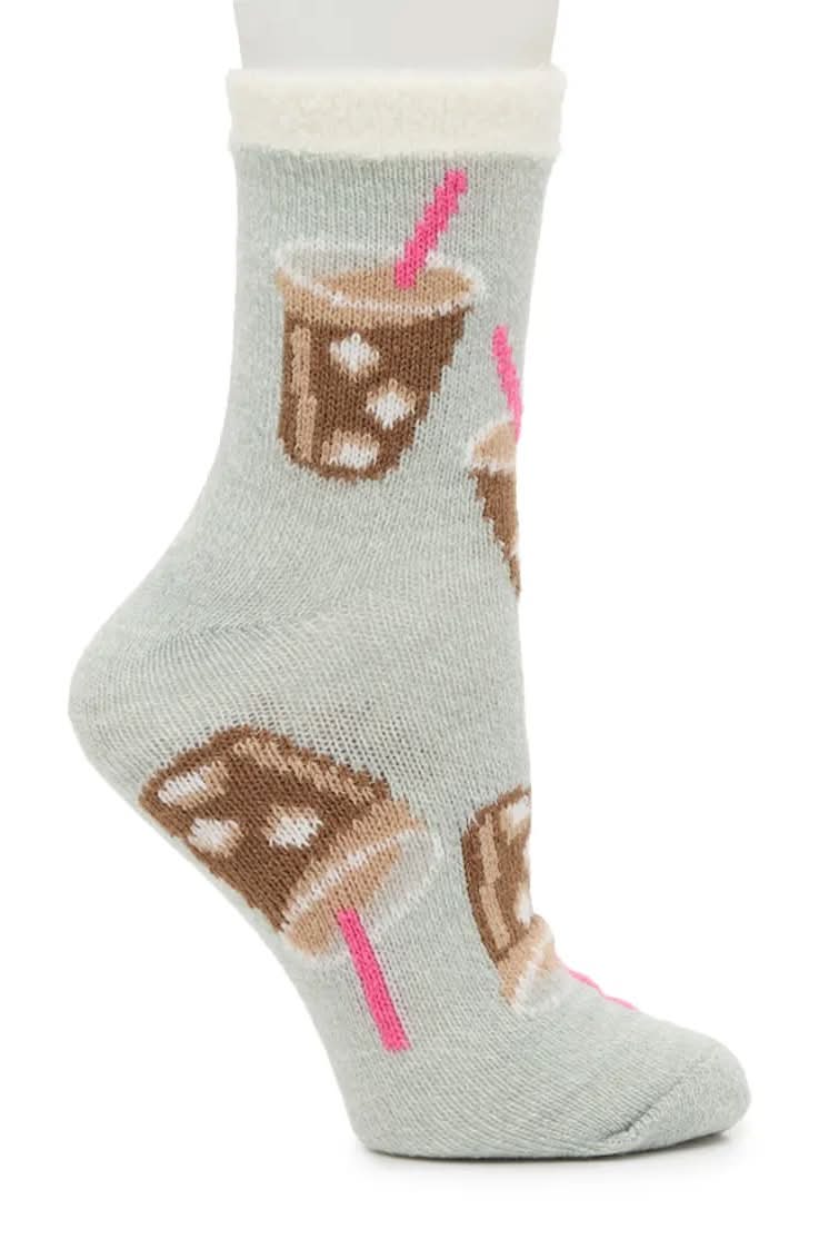 Fireside Ice Coffee Cozy Lodge Women's Crew Socks (Light Blue One Size)