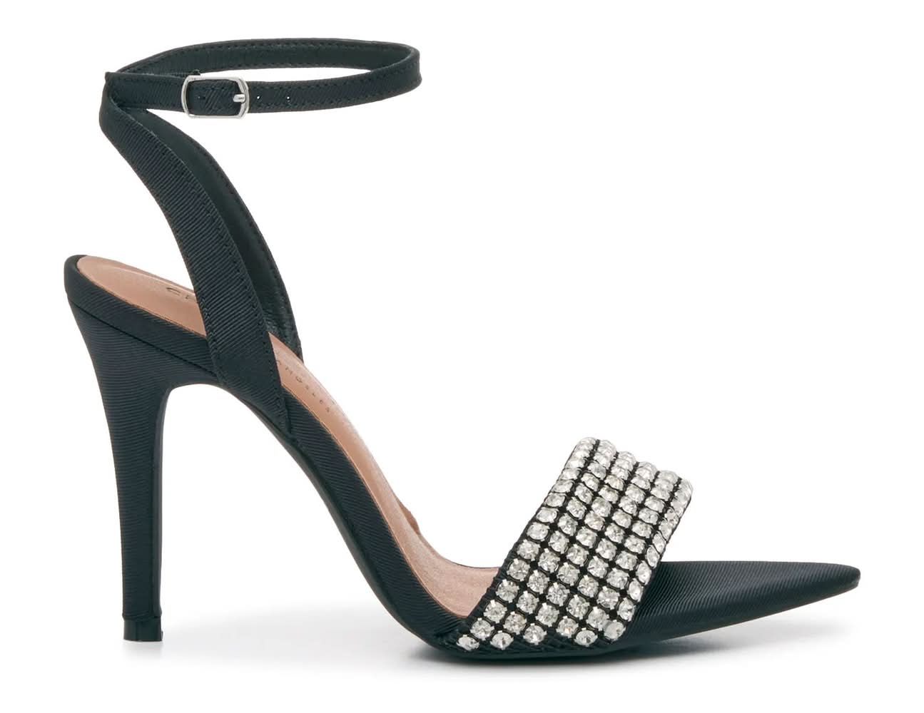 You'll be sure to catch eyes in the Justine sandal from Chinese Laundry. Featuring a rhinestone-embellished strap, pointed toe, and towering heel for modern sophistication from every angle. • Color: Black • Size: Medium - 6 • female