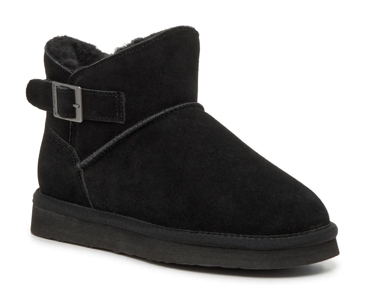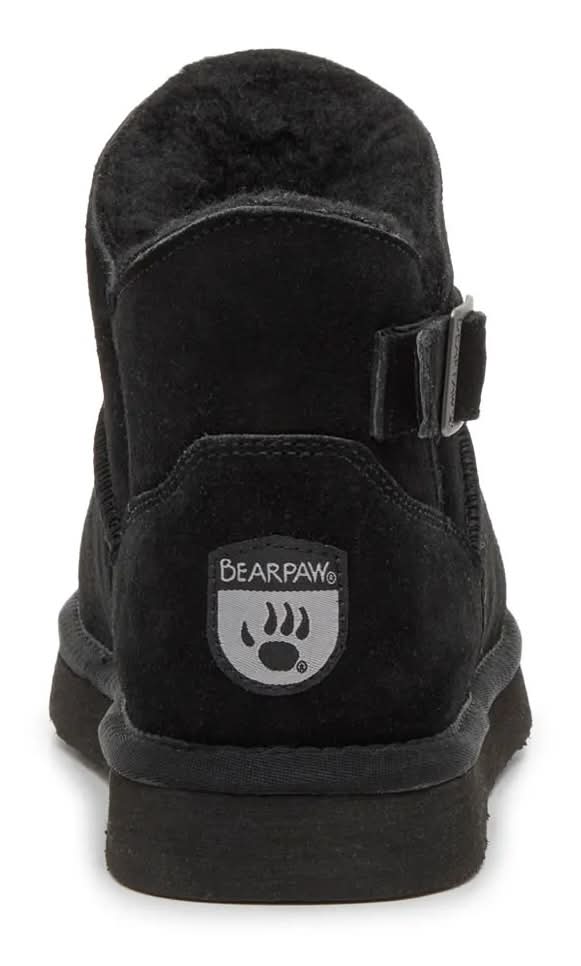 The Bette bootie from Bearpaw offers that classic cozy appeal thanks to its wool blend lining and EVA midsole. The decorative buckle accent adds an extra hint of flair. • Color: Black • Size: Medium - 8 • female