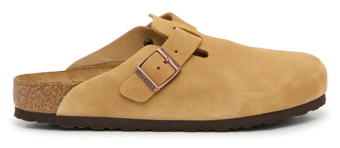 The Boston clog from Birkenstock is a versatile classic you can rock all year long. A contoured footbed and suede lining keep you extra comfortable. • Color: Latte cream suede • Size: Medium - EU 45 / US Mens 12-12.5 / Womens 14-14.5 • male