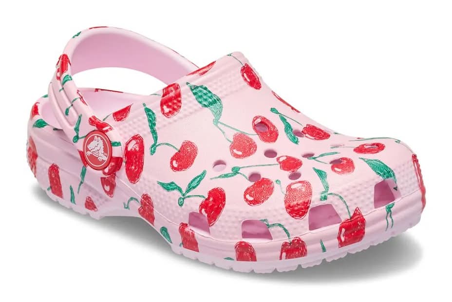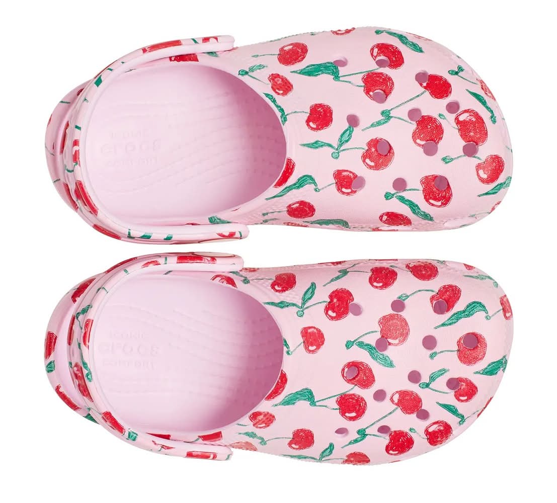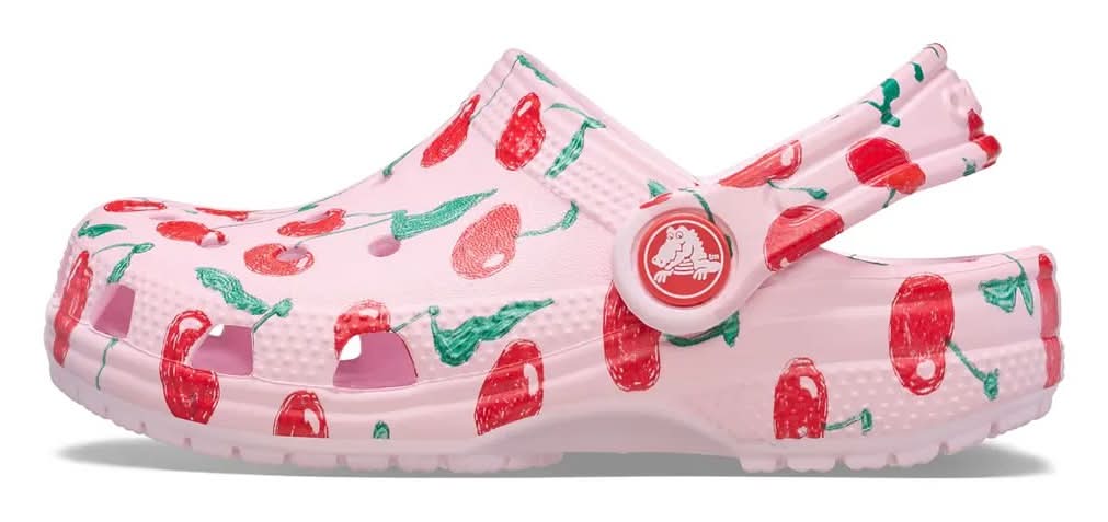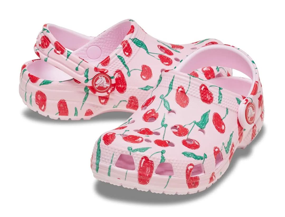 Keep little feet looking sweet! The Classic Fruit clog from Crocs features the iconic silhouette and comfortable construction that you expect from the brand, now in a small size that is perfect for your mini. Complete with a fun cherry print design that keeps the style fresh. Not sure which size to order? Click here to check out our Kids Measuring Guide! For more helpful tips and sizing FAQs, click here. • Color: Pink milk cherry print • Size: Medium - 7 Toddler • female