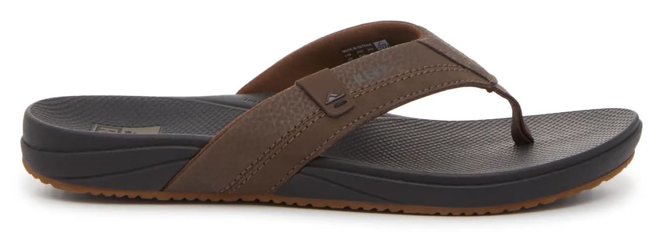 The Cushion Spring flip flop from Reef is back and better than ever with this second edition from Reef. The Anatomic Contouring footbed features arch support and plush cushioning for your new go-to pair. • Color: Dark brown • Size: Medium - 12 • male