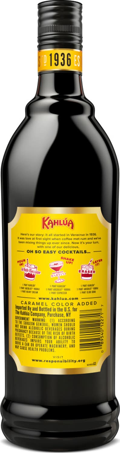The slight sweetness and classic coffee flavor of Kahlúa make it the perfect addition to drinks made with milk or cream. Hailing from Veracruz, Mexico, Kahlúa coffee liqueur is lovingly crafted using only the finest ingredients, such as 100 percent Arabica coffee beans and real sugarcane. Alcohol by volume: 20%
