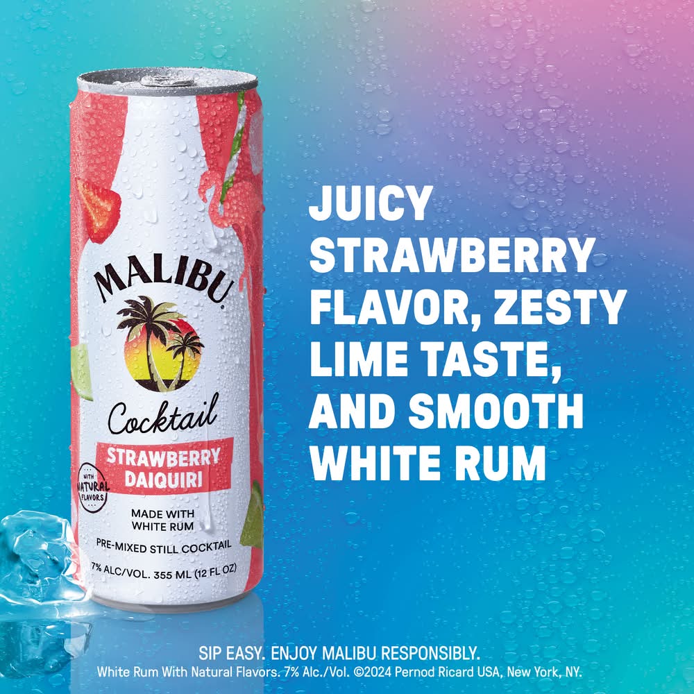 Malibu Pre Mixed Still Cocktails, Strawberry Daiquiri (4 x 12 fl oz)