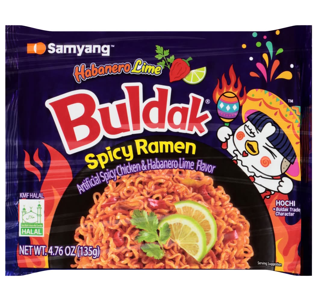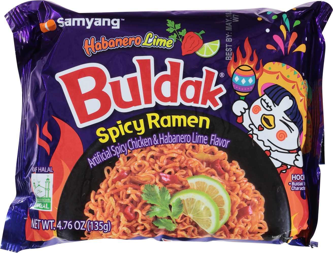 Samyang Buldak Spicy Ramen Noodles, Chicken-Habanero Lime (5 x 4.76 oz)