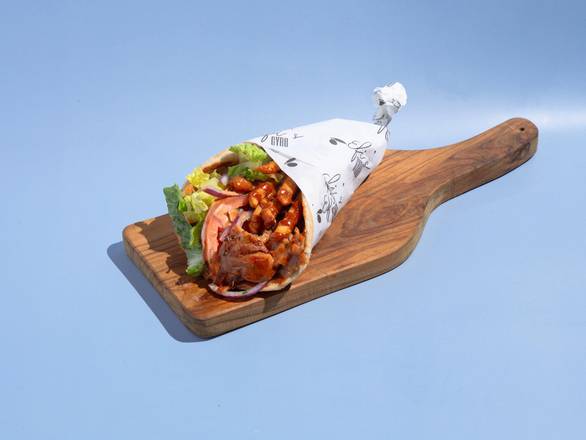 Shaved Chicken wrapped handmade pita, Efi's sauce ( Spicy) , tomato, onion, lettuce, and a couple of fries