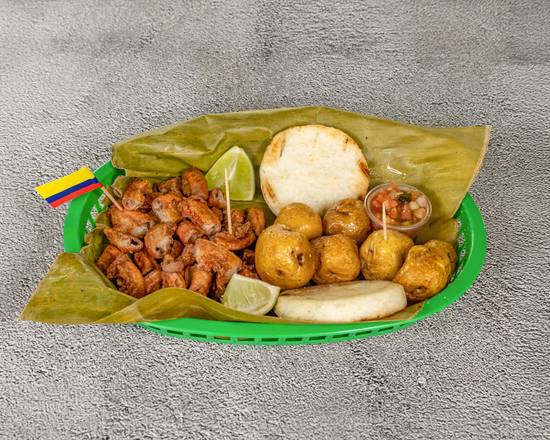 Chunchulla frita,arepa,papa criolla,limón,picante