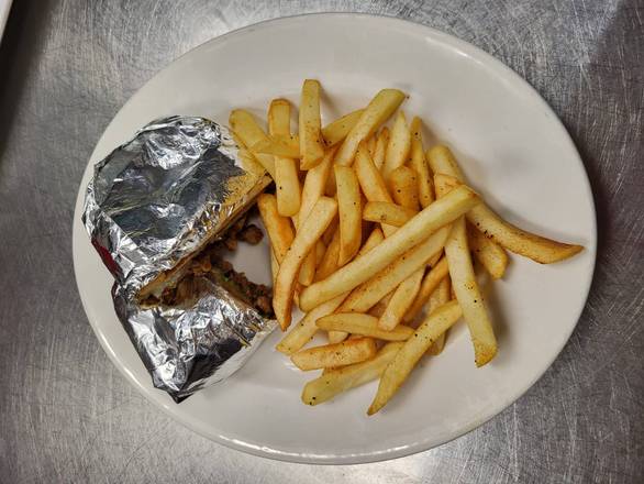 Check our mouthwatering Asada Torta, a delightful Mexican sandwich that brings together the perfect blend of flavors and textures. This hearty torta features tender, juicy grilled asada, layered with crisp lettuce, ripe tomatoes, creamy refried beans, and melted cheese. We add a touch of richness with smooth mayonnaise and fresh avocado slices, all nestled in a soft, toasted bolillo roll. Served with an order of fries.