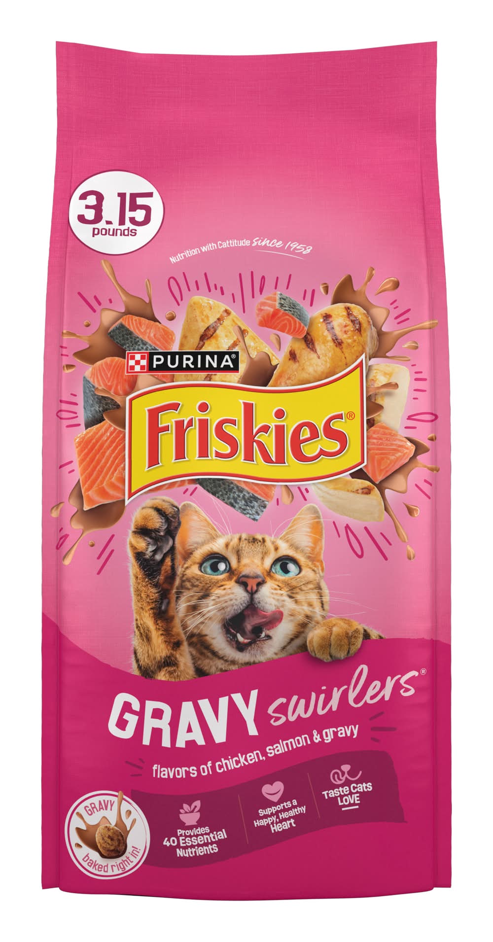 Purina Friskies Gravy Swirl’d Dry Cat Food, Chicken Salmon & Gravy (3.15 lbs)