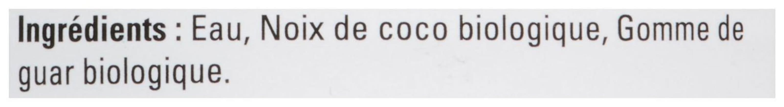 Ingredients: Water, Organic Coconut Organic Guar Gum. Contains: Tree Nuts Gluten