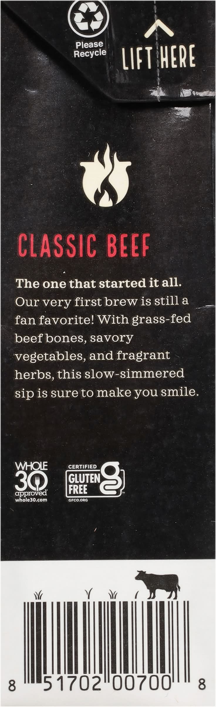 The one that started it all. Our very first brew is still a fan favorite! with grass-fed, savory vegetables, and fragrant herbs, this slow-simmered sip is sure to make you smile. • Flavor: Beef • Kettle & Fire Inc., Austin, TX, 78702 • Packaging: Reusable