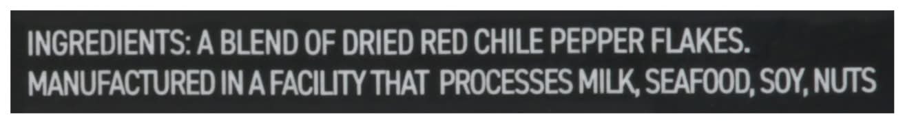 Ingredients: A Blend of Dried Red Chile Pepper Flakes Contains: Milk, Fish, Soybeans, Tree Nuts