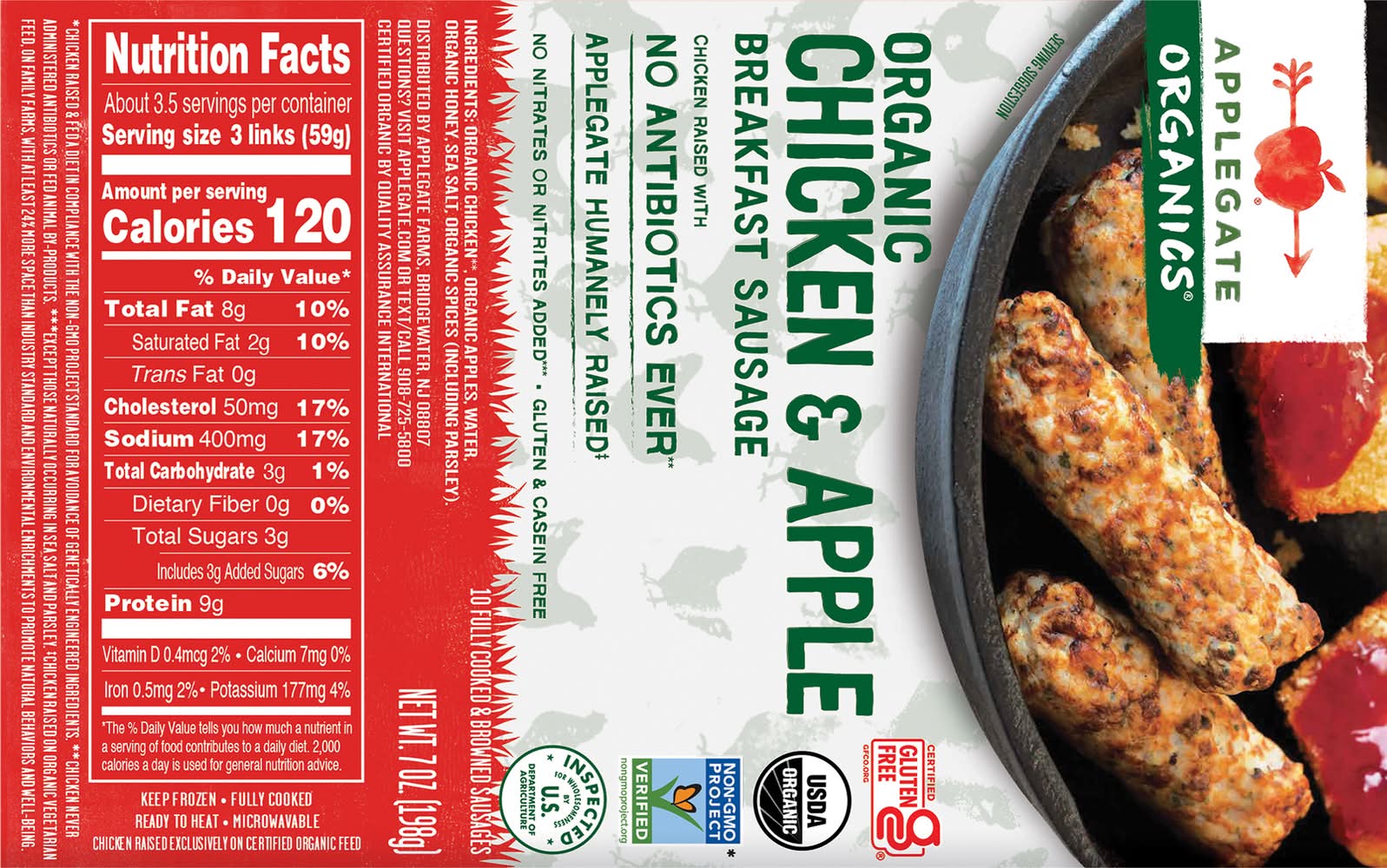 Organic Chicken & Apple Breakfast Sausage (Frozen) • Number of servings: 3 • Applegate Farms, Bridgewater, NJ, 08807,
