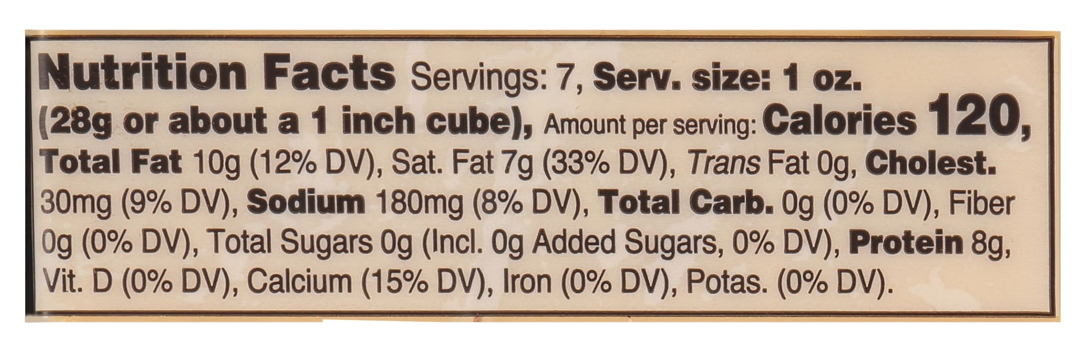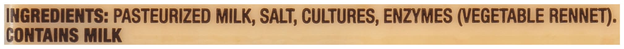 Ingredients: Pasteurized Milk, Salt, Cultures, Enzymes (Vegetable Rennet) Contains: Milk