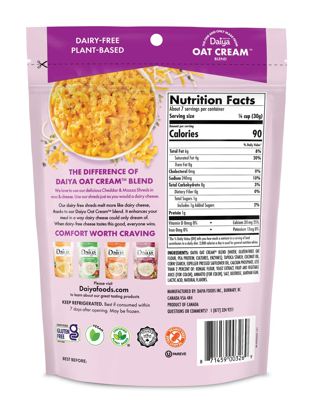 Daiya Dairy Free Cheddar & Mozza Cheese Shreds - 7.1 oz • Number of servings: 7 • Daiya Foods, Vancouver, BC, V5M 3T7