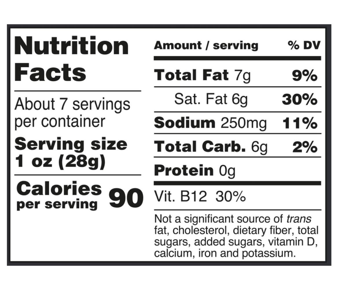 Cheese, Cheddar Flavor, Epic Mature, Block • Number of servings: 7 • Upfield, Madison, CT, 06443, Ph: 203-226-6577