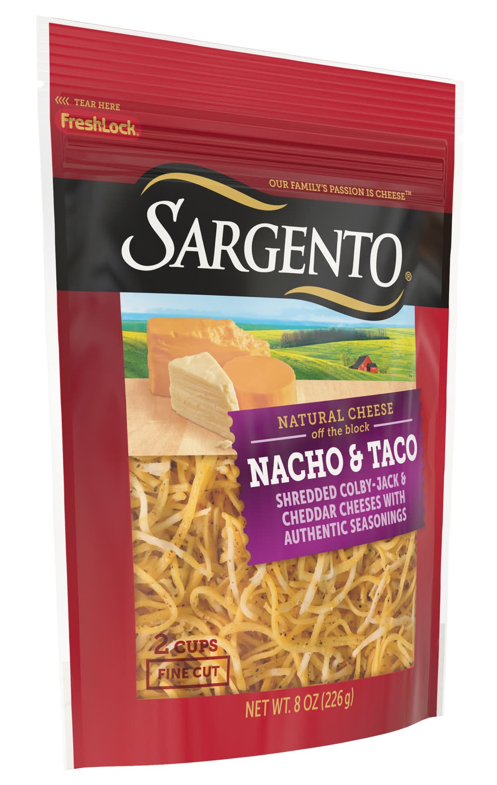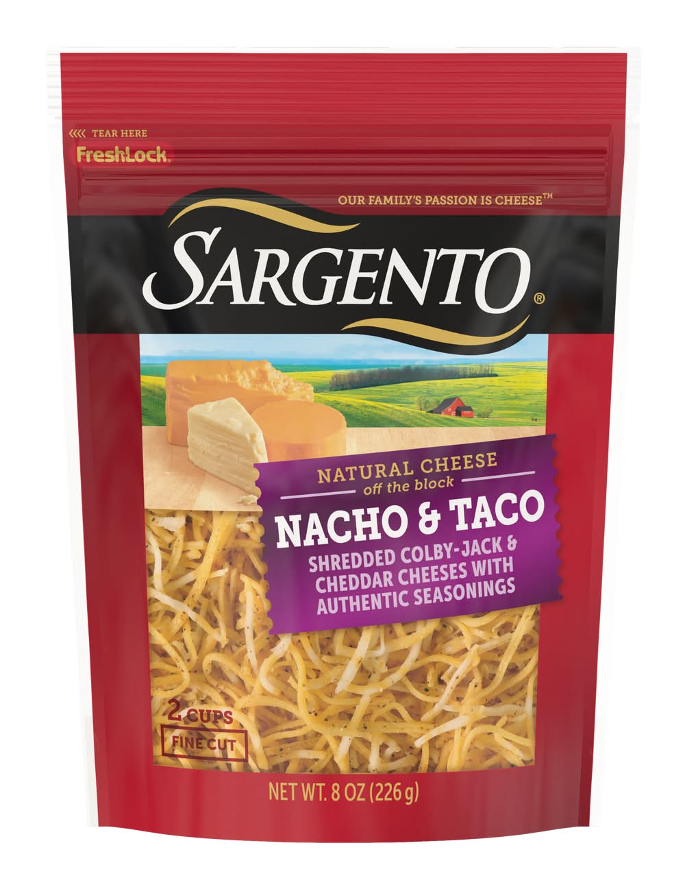 Combining south-of-the-border seasonings, a hint of lime flavor and creamy Cheddar and Colby-Jack cheeses, this blend adds a new twist to your favorite Mexican and Southwestern dishes. • Number of servings: 8 • Sargento Foods Inc., Plymouth, WI, 53073