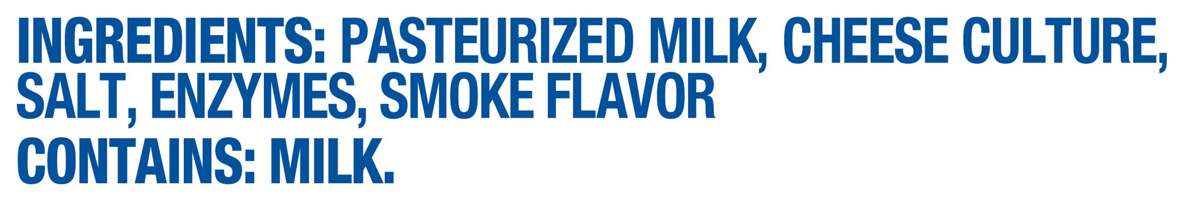 Ingredients: Pasteurized Milk, Cheese Culture, Salt, Enzymes, Smoke Flavor Contains: Milk