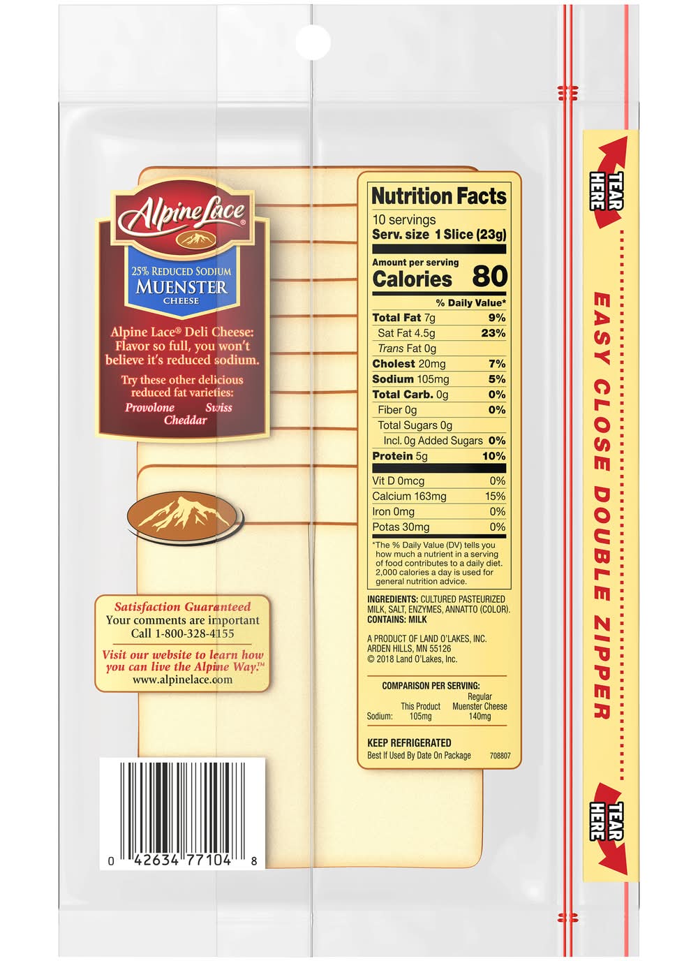 Alpine Lace Reduced Sodium Sliced Muenster Cheese (8 oz)