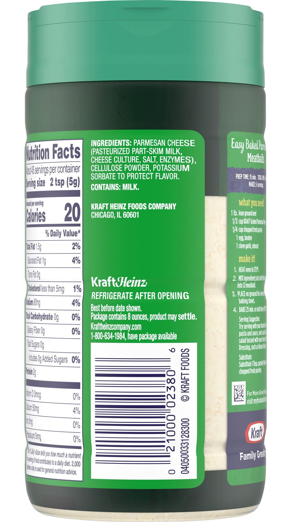 Dry Grated Cheese • Number of servings: 45 • Kraft Heinz Foods Company, Chicago, IL, 60601, Ph: 800-634-1984