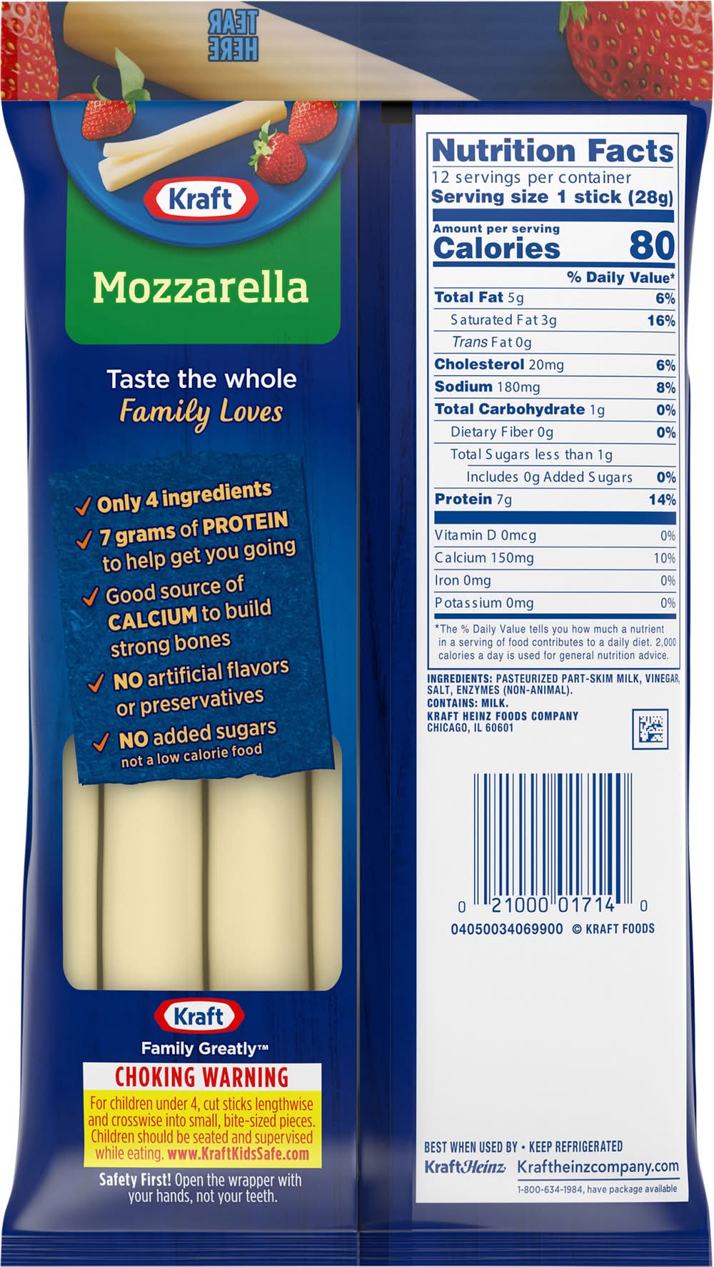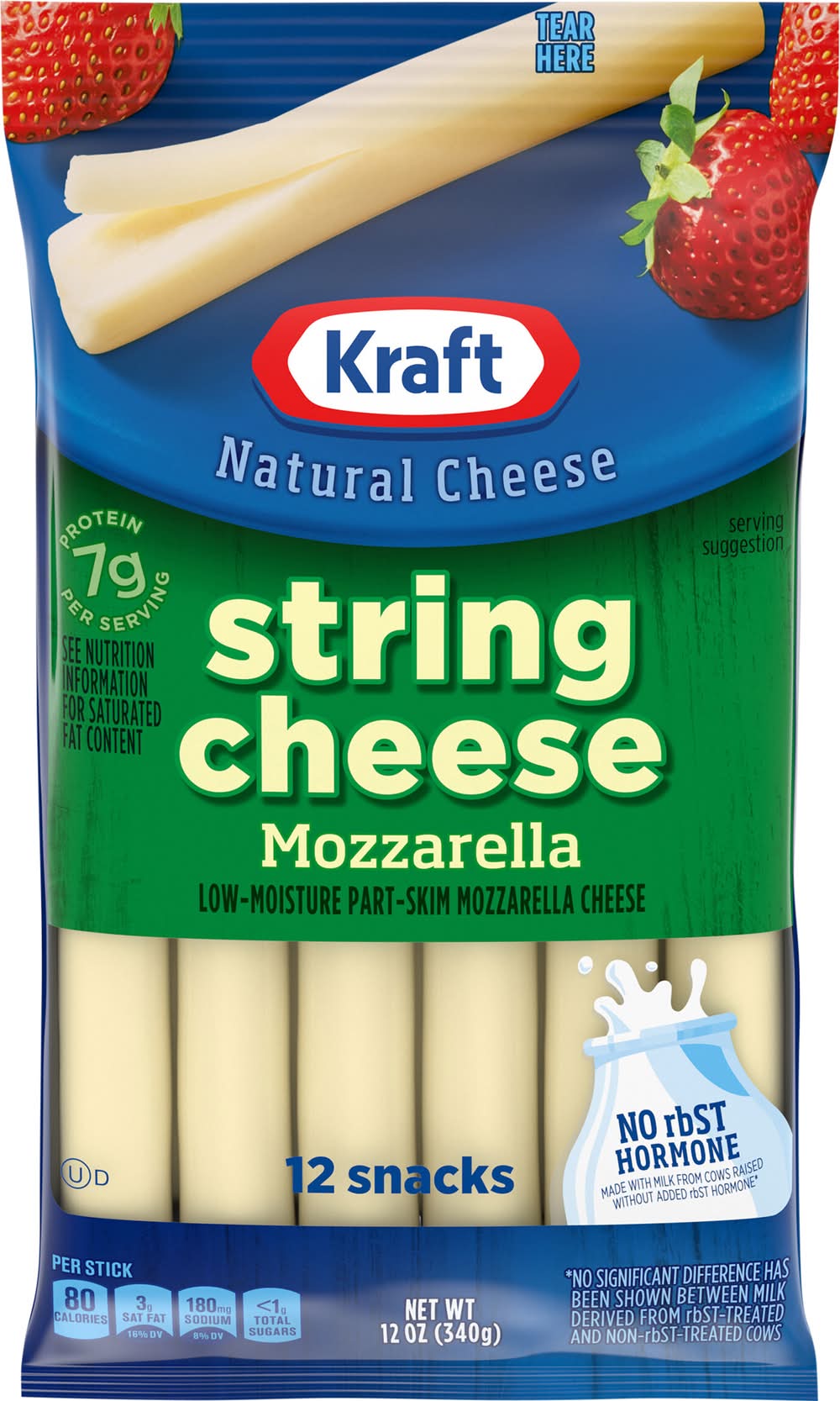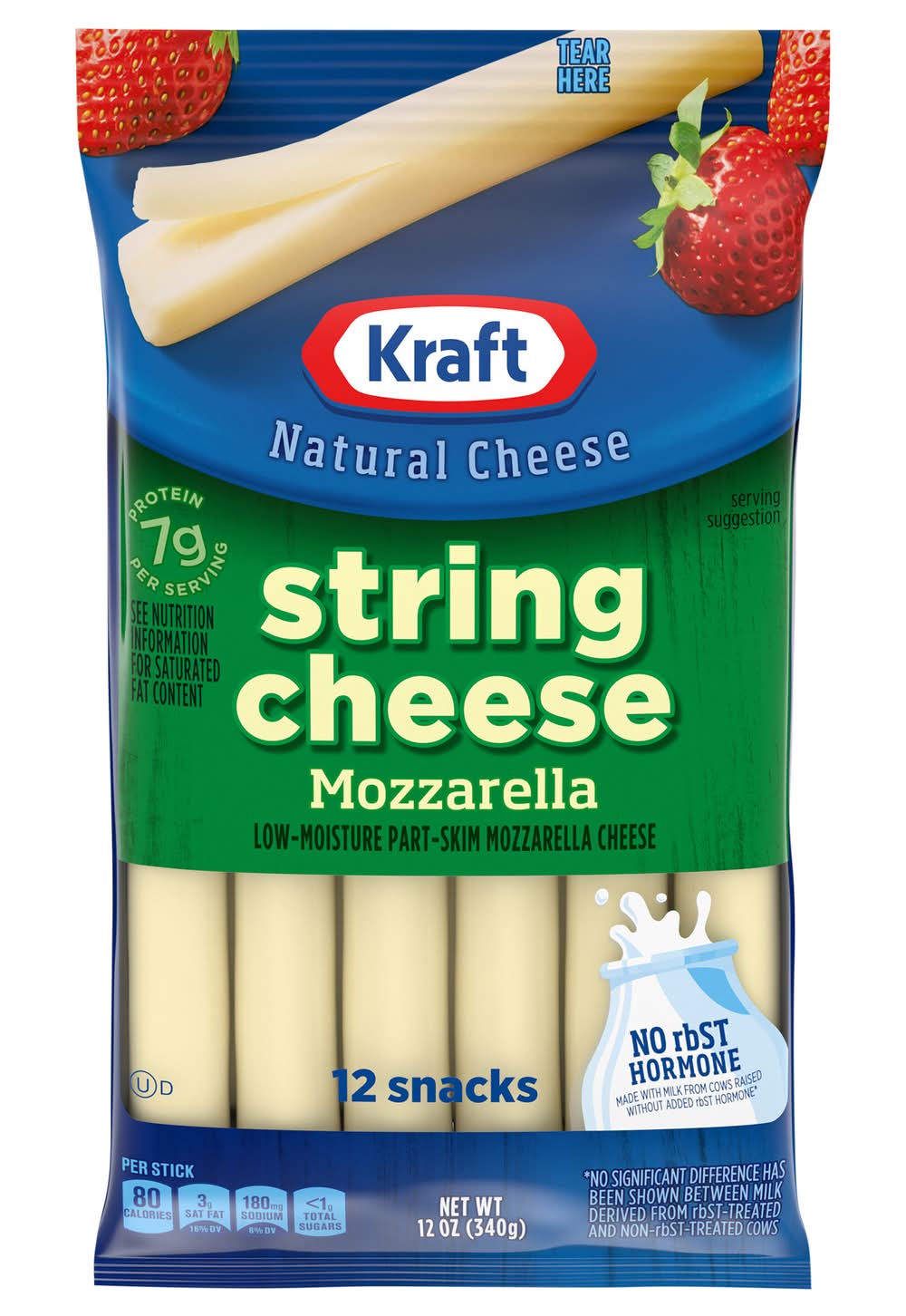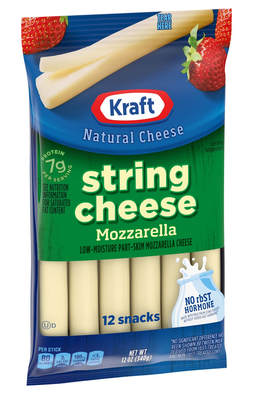 Kraft Low-Moisture Part-Skim Mozzarella String Cheese Snacks (12 oz, 12 ct)