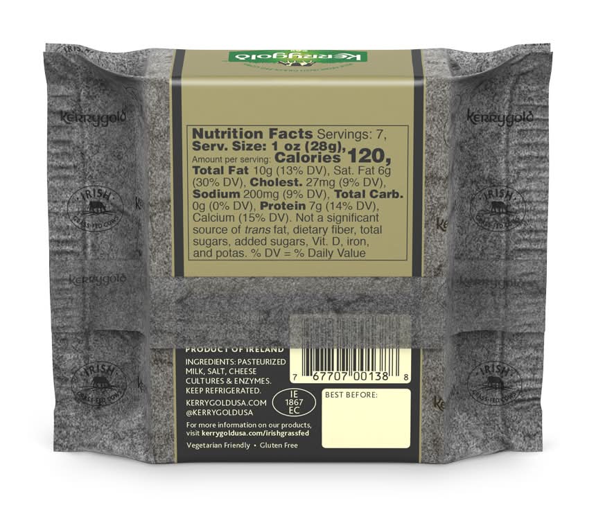If you like your flavors really intense, look for Kerrygold Reserve Cheddar with the gold label. Its sharp, strong flavor comes from an extra year of aging. So while the flavors are concentrated, the finish is still rich and smooth. And of course, like every cheese we make, it comes only from the finest milk of Ireland’s grass-fed cows Aged 2 Years. Ornua Foods North America Inc., Evanston IL 60201