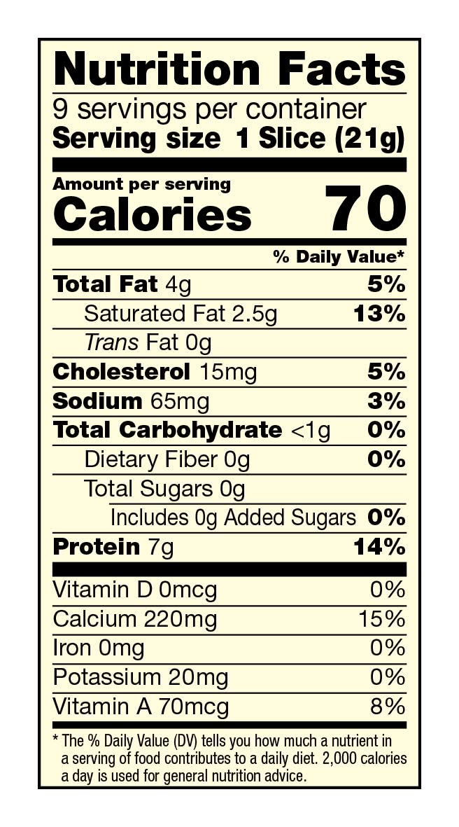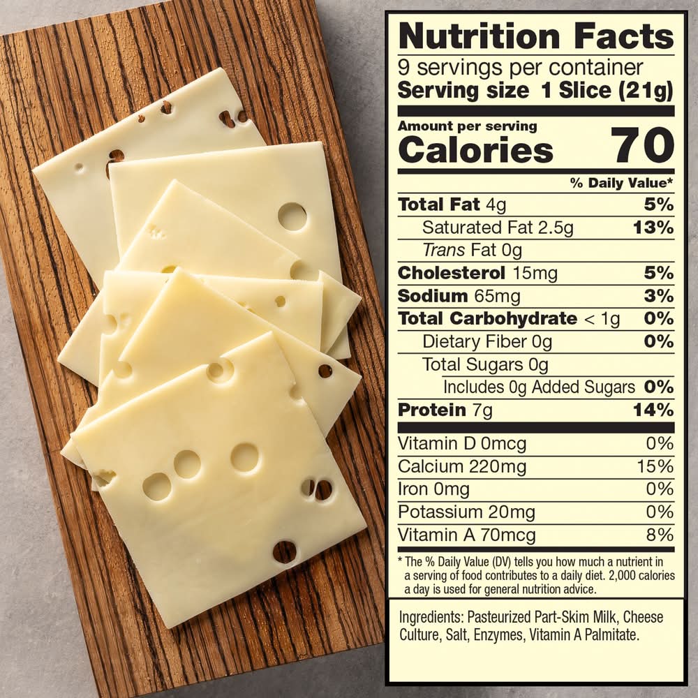 Enjoy a classic deli taste with our reduced-fat Swiss cheese. Serve with lean meat on an open-faced sandwich or melt on veggies. This convenient packaged cheese is ideal for appetizers, entrees, sandwiches or serving with crackers. Number of servings: 9