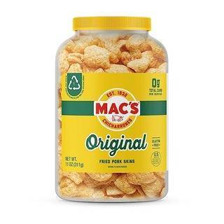 Mac's Pork Rinds, Fried Pork Skins, Original,11 oz Canister Zero Carbs, Keto Friendly Snack, Gluten Free